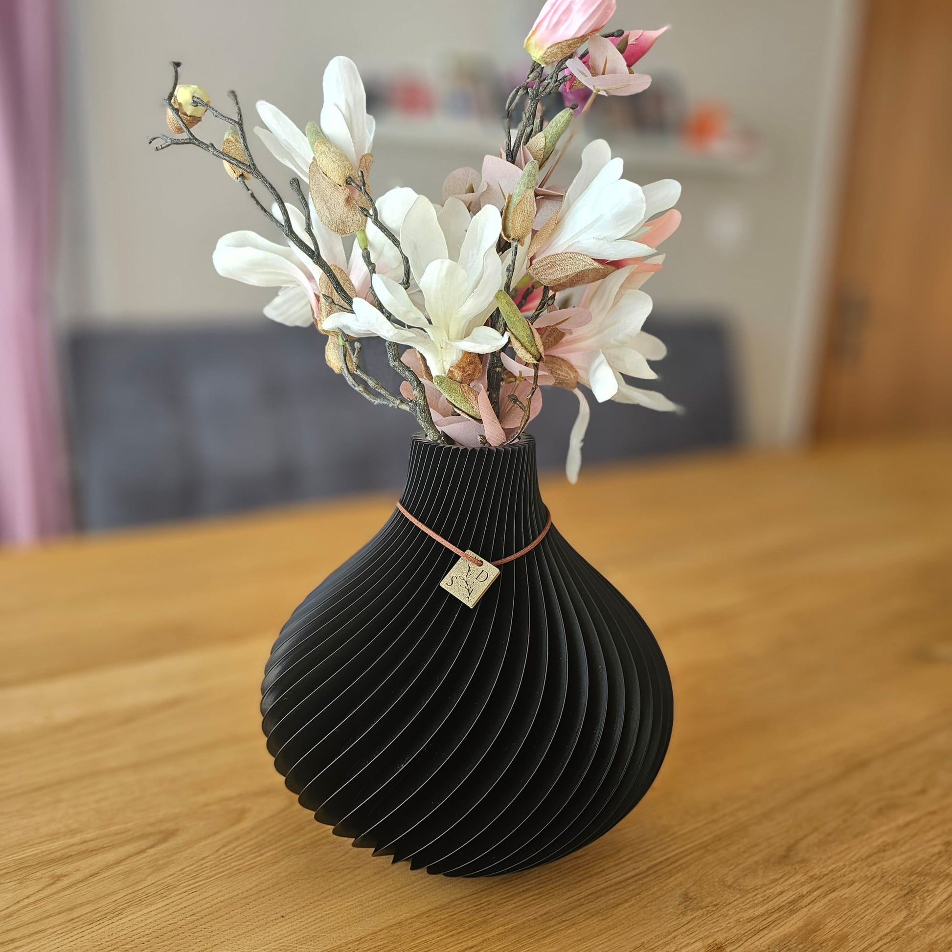 Die „Lisa Vase“ beeindruckt mit ihrer geschwungenen, spiralförmigen Struktur und bringt natürliche Harmonie in dein Zuhause. Ob mit frischen Blumen, Trockenblumen oder als reines Solo-Objekt – sie setzt in jeder Variante stilvolle Akzente.